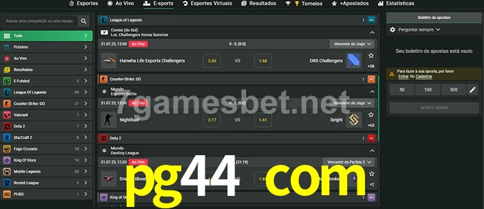 O pg44 com oferece uma grande seleção de opções de apostas em e-sports com probabilidades competitivas